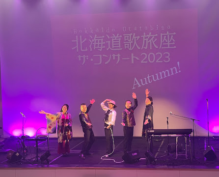 安城市御幸本町のアンフォーレホールで11月13日午後、「北海道歌旅座ザ・コンサート2023」が開かれた。今まで「北海道歌旅座」の名前は聞いたことがなく、アンフォーレに置いてあったチラシで芝居の旅一座ではなく歌の旅一座が存在することを初めて知った。名前の通り北海道で2009年に旗揚げして全国でコンサートを展開、昭和の流行歌にフォークソング、家族・故郷・希望がテーマのオリジナル曲を歌い、公演数は何と1400回を数えるという。
